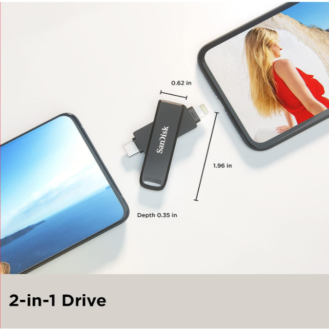 فلاش سانديسك 2 في 1 منفذ للايفون وماك ومنفذ تايب سيتمكن من نقل الملفات بسهولة بين أجهزة ايفون وماك والاجهزة التي تدعم منفذ التايب سي منفذ الجيل 3.1 عالي الأداء مع سرعة القراءة ونقل الملفات
